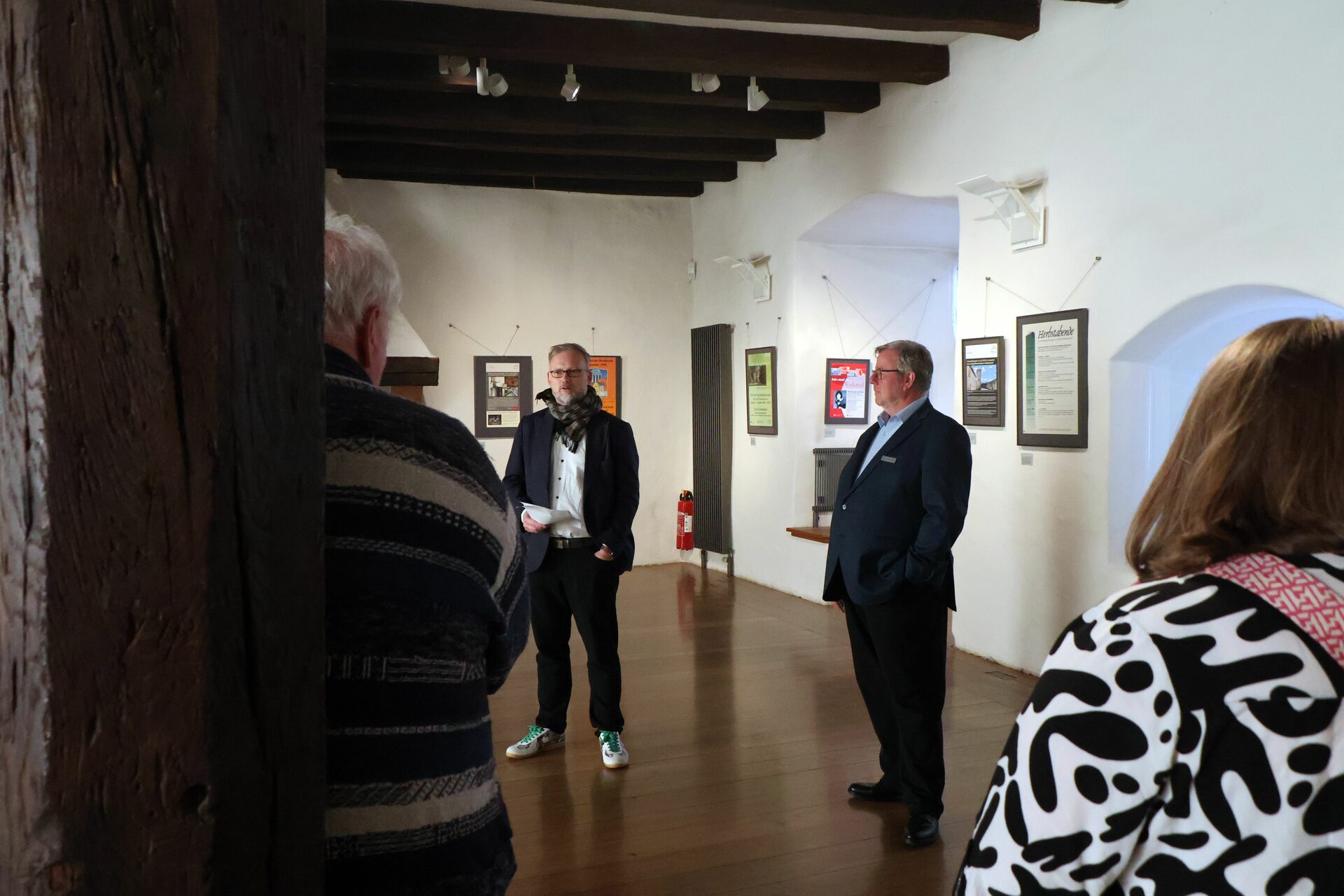 Marburg-Biedenkopf – Eine repräsentative Auswahl an Plakaten aus den vergangenen drei Jahrzehnten: Das zeigt die Sonderausstellung „In eigener Sache“ im Hinterlandmuseum. Mit diesen wurde für Ausstellungen und Kulturveranstaltungen im Museum und auf dem Schlosshof geworben. Landrat Jens Womelsdorf eröffnete die vierte und letzte Sonderausstellung des Jahres 2025 im Schloss Biedenkopf.