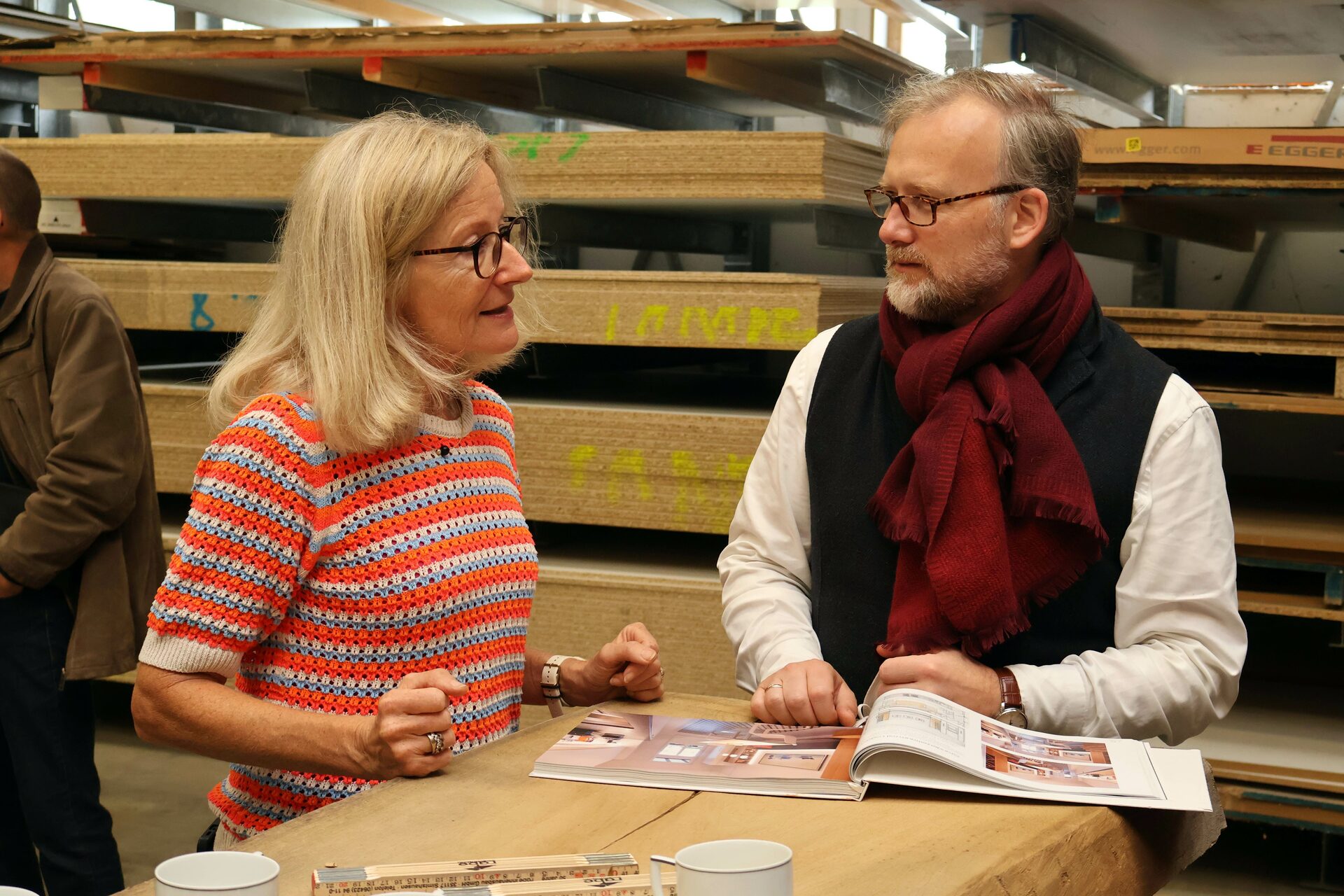 In Simtshausen öffneten gleich zwei Familienbetriebe ihre Tore. Die Firma Rabe Innenausbau, gegründet 1959, ist ein familiengeführter Betrieb mit Schwerpunkt auf Schreinereiarbeiten und individuellem Innenausbau für private sowie gewerbliche Räume. Felix Rabe führte den Landrat durch die Werkstätten und zeigte Beispiele aktueller Projekte.