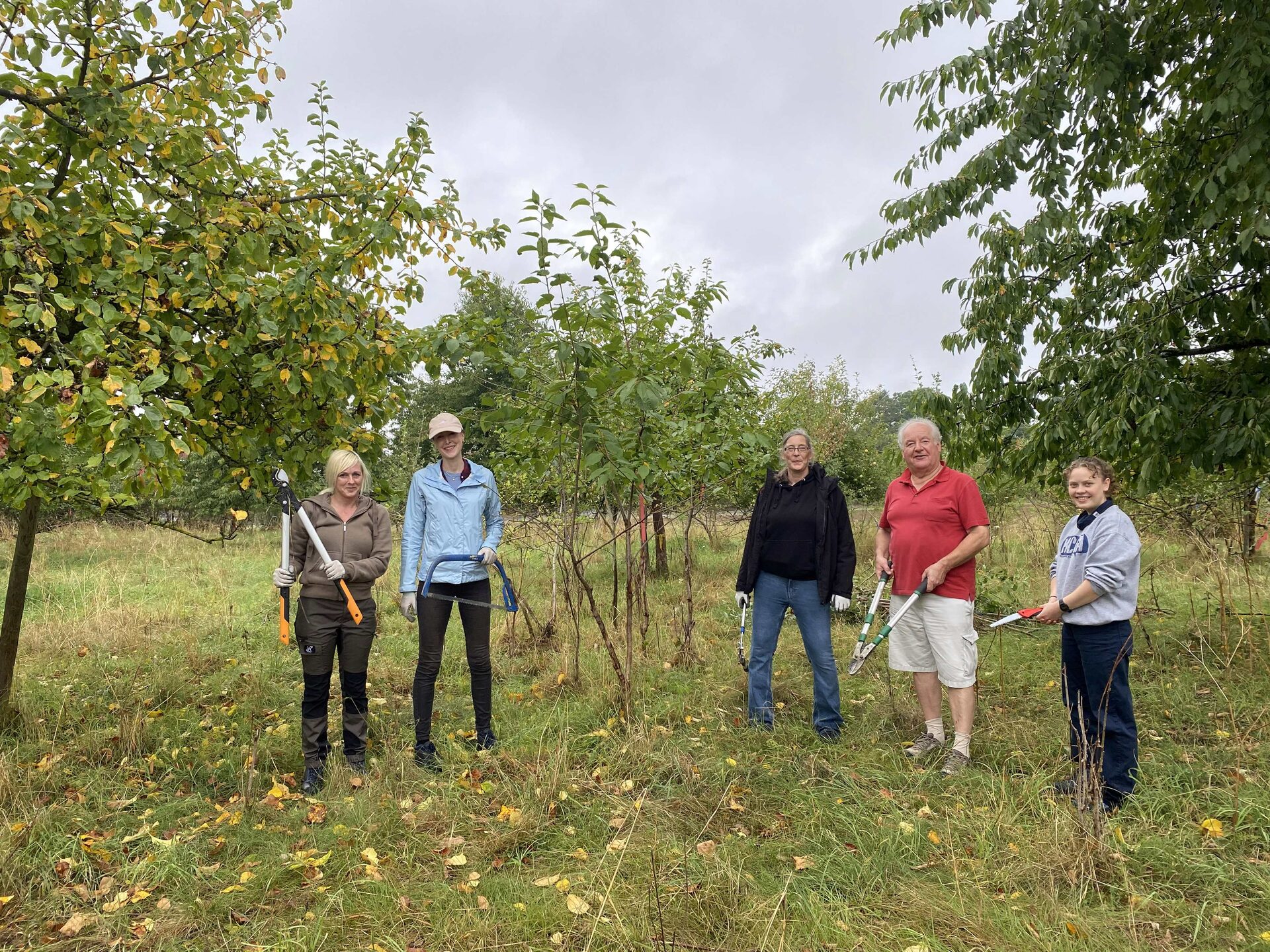 Der nächste Arbeitseinsatz fand Ende September statt. Hier wurden weitere Baumstämme mit Schilfmatten gegen Verbiss durch Tiere geschützt und die Entfernung unerwünschter Gehölze fortgeführt. Darüber hinaus wurden Äpfel geerntet, um daraus Saft zu gewinnen. Im November sowie im nächsten Jahr werden die Arbeiten fortgeführt.