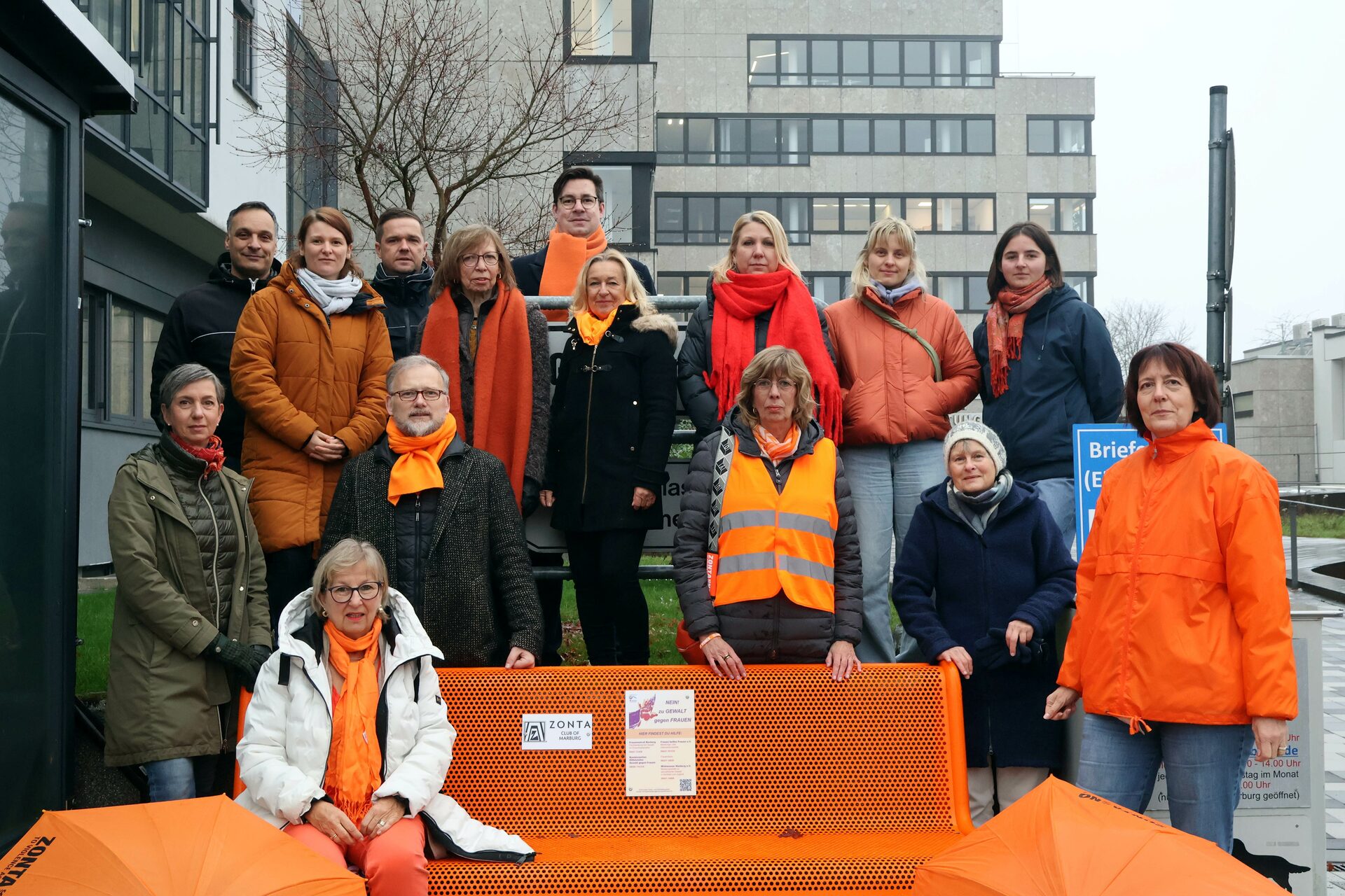 Marburg-Biedenkopf – Ein sichtbares Zeichen gegen Gewalt gegen Frauen und Mädchen: Das setzt der Landkreis Marburg-Biedenkopf mit dem Kommunalen Frauen- und Gleichstellungsbüro gemeinsam mit dem Zonta Club Marburg mit einer orangefarbenen Sitzbank. Die neue Bank vor dem Haupthaus der Kreisverwaltung in Marburg soll einladen, Platz zu nehmen, innezuhalten und über das gesellschaftliche Thema nachzudenken und darüber ins Gespräch zu kommen.