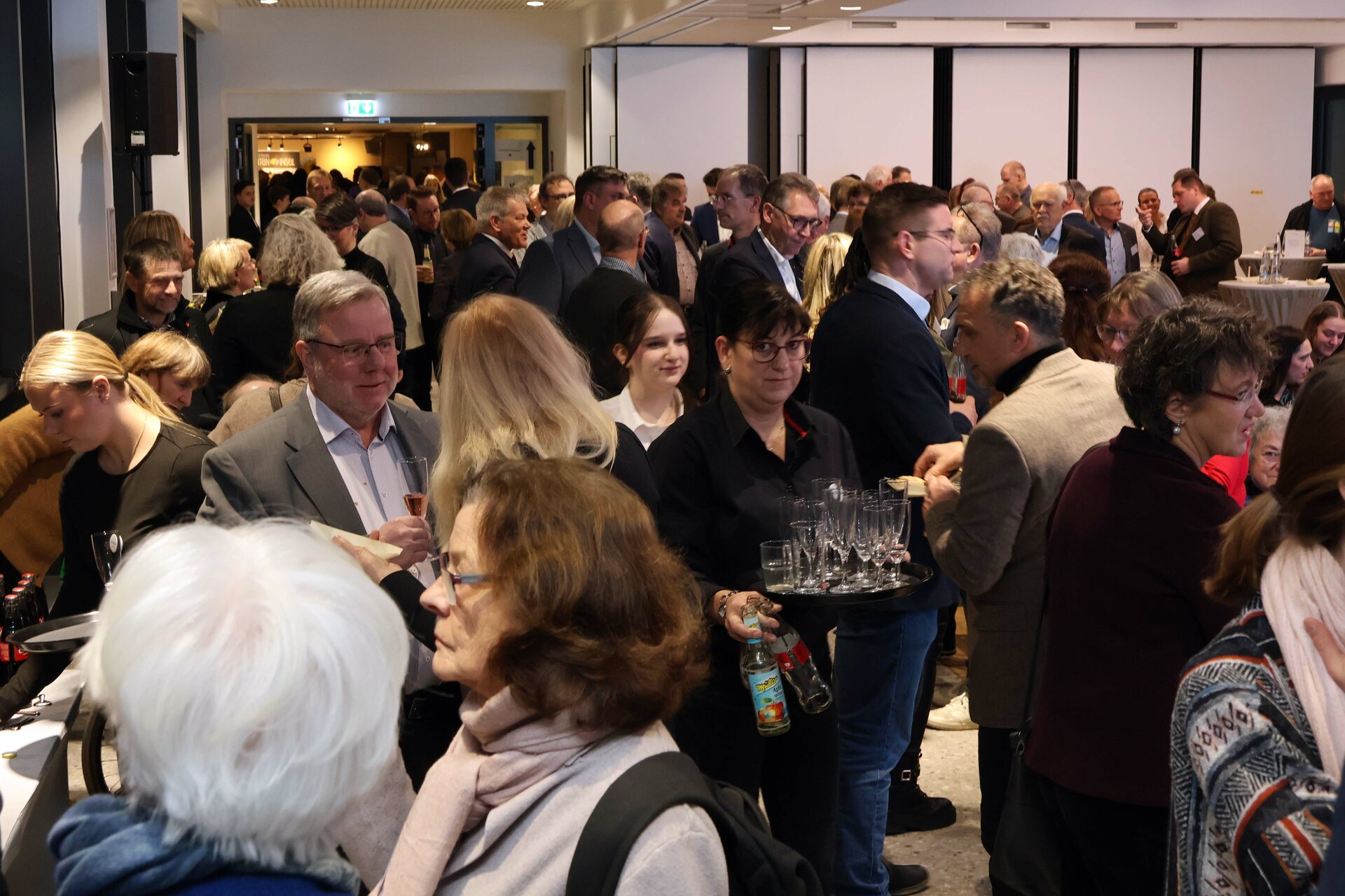 Im Anschluss an die Ansprache des Landrats nutzten die Gäste die Gelegenheit zum Austausch und Netzwerken. Musikalisch umrahmt wurde der Empfang von der Band „Buskers Deluxe“. Für das leibliche Wohl sorgte die kreiseigene Gesellschaft Integral in der neuen Kantine im Kreishaus, dem „Bistro Auszeit“.