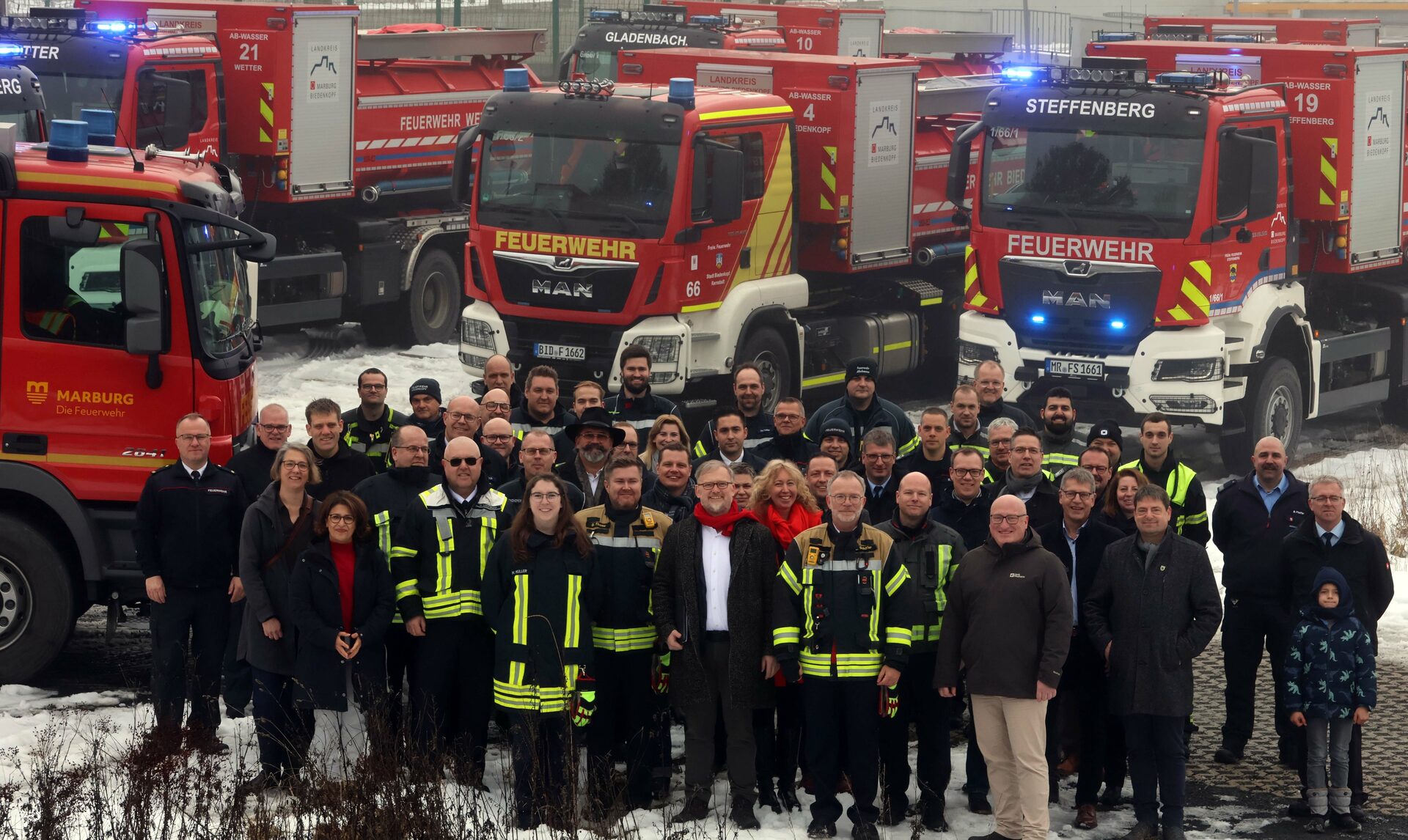 „Auslöser des Projekts war der verheerende Waldbrand bei Cölbe-Schönstadt im Sommer 2022. Fehlendes Löschwasser machte den Einsatzkräften damals das Leben schwer. Als Erkenntnis daraus, als Auftrag des Kreistages, die Folgen des Klimawandels zu managen, und auf Bitten unserer Kommunen haben wir gemeinsam mit den Städten und Gemeinden ein Konzept zur mobilen Löschwasserversorgung bei Waldbränden geplant und umgesetzt“, erläuterte Landrat Jens Womelsdorf bei der offiziellen Vorstellung der Fahrzeuge am Samstag am Marburger Landratsamt.