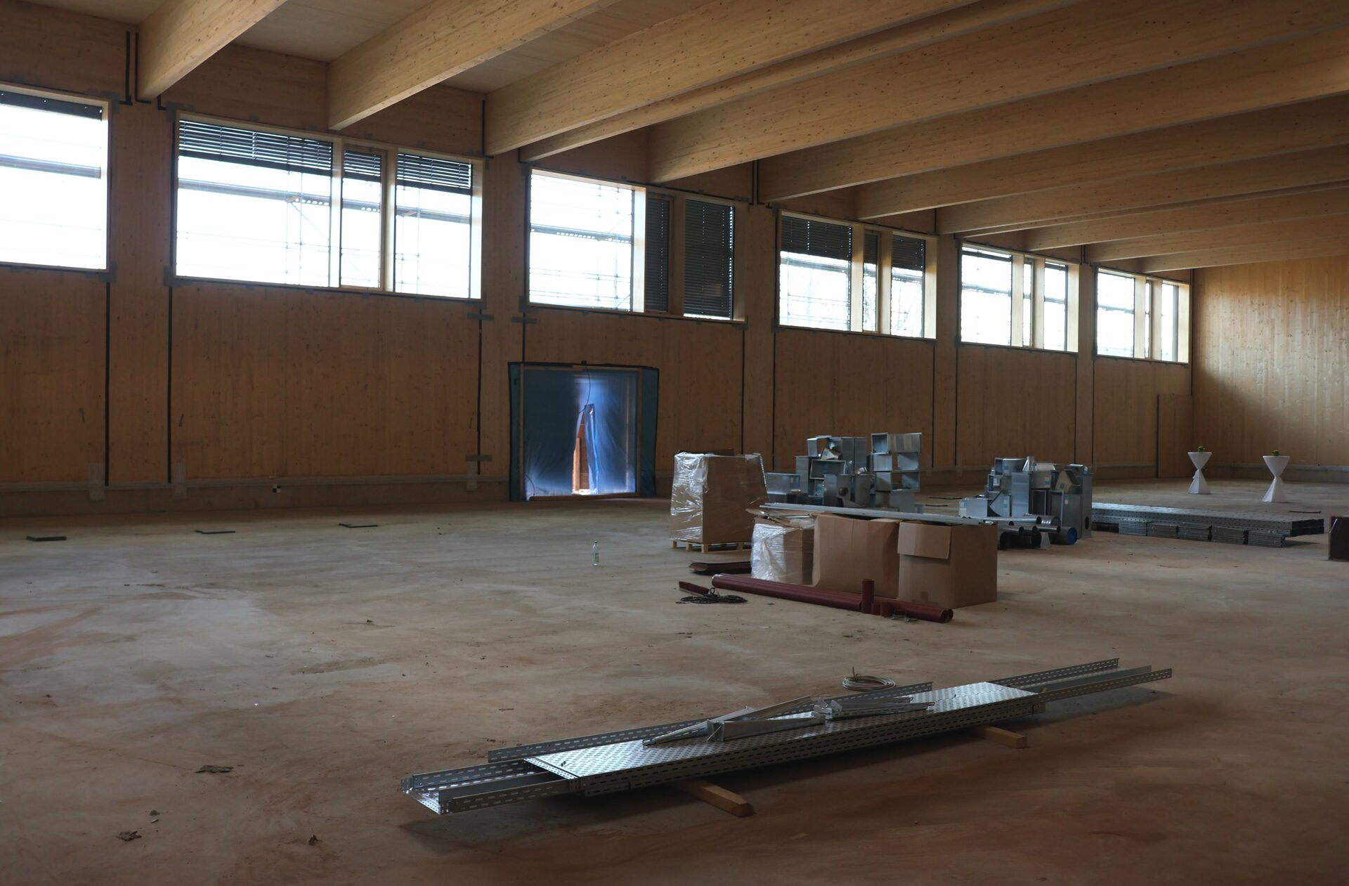 Inzwischen sind zahlreiche Bauabschnitte weit vorangeschritten. Die Arbeiten an den Heizungs-Lüftungs-, Sanitär- und Elektroinstallationen sowie an den Trockenbauarbeiten haben im Januar begonnen. Auch die Aufträge für Fliesenarbeiten, Bodenbelagsarbeiten und die Prallwände sind bereits an Firmen vergeben. Die Zimmerer- und Rohbauarbeiten sind inzwischen abgeschlossen.